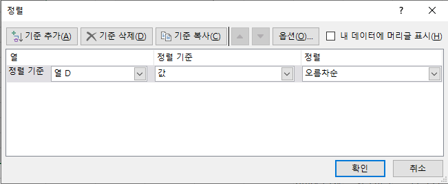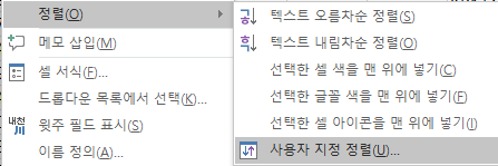 만약 매크로없이 바로 실행하려면 아래와 같이 사용자 지정 정렬을 이용하는 방법이 있다.