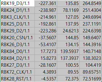 설계에서 나온 이름과 x,y좌표를 빼내 x 와 y사이의 거리로 길이를 뽑아낸 상태에서 길이를 기준으로 내림차순한 모습이다.