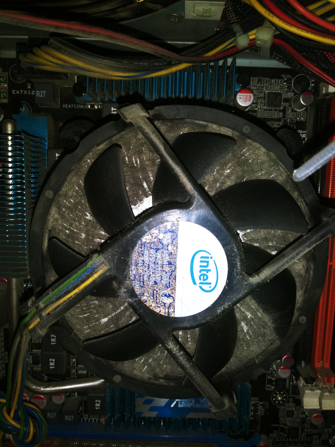 저건 에어 뿌려도 안되겠다 생각을 먹고 쿨러를 갈았다.(인텔건 처음 교체해봄) i7기본 쿨러 크기가 애매하게 안맞아서 하나 핀 망가져서 다른하나(2개가 끝) 겨우 장착해서 넘겼다.