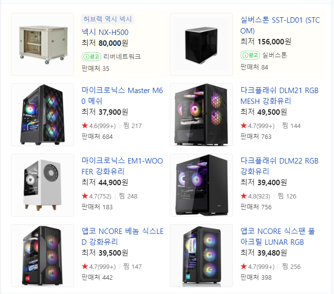 이케이스는(화이트) 일단 시원해 보였다. 그리고 앞에 팬에 빛이 들어오는게 아니라